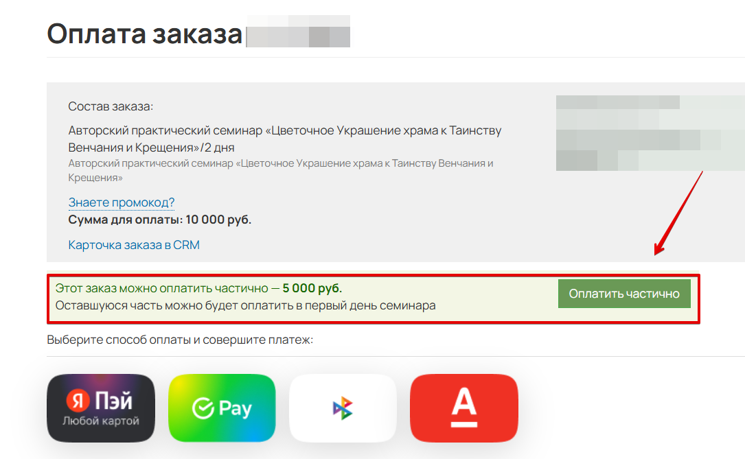 *Вы можете оплатить этот заказ частично на странице оплаты. Для этого нажмите кнопку выше «ОПЛАТИТЬ»
